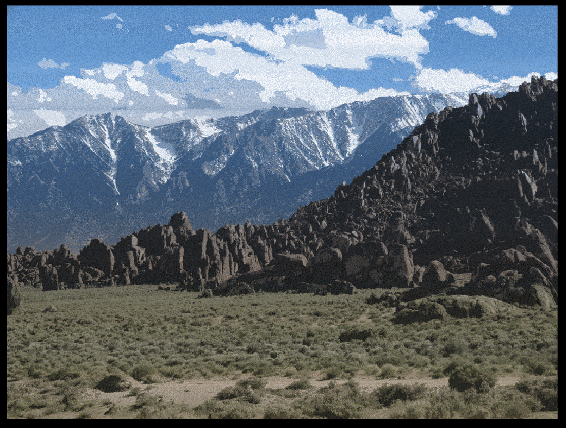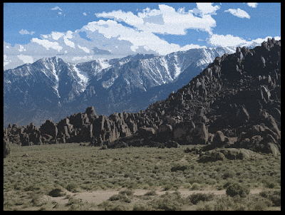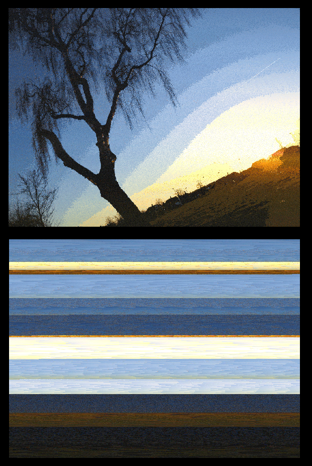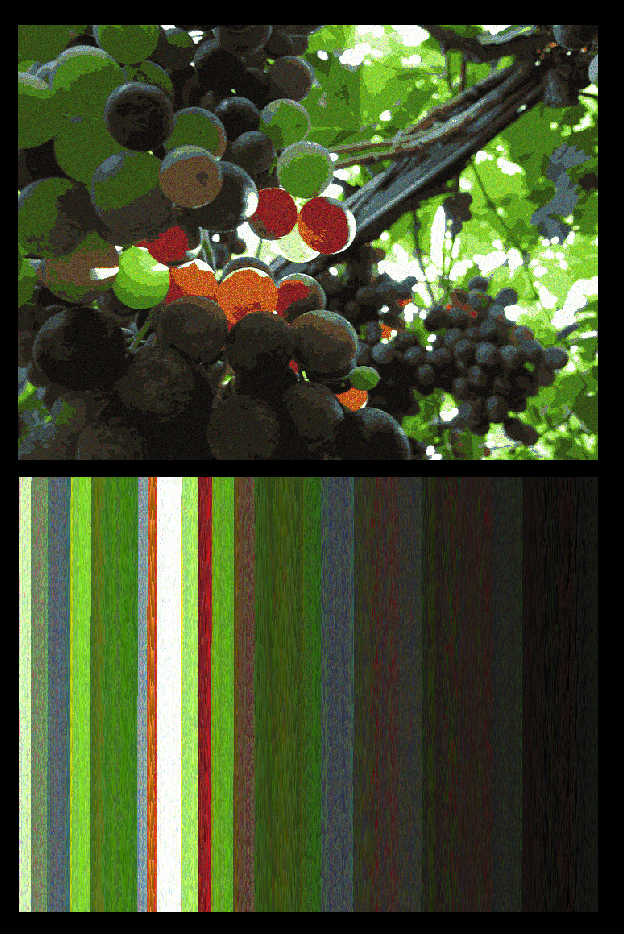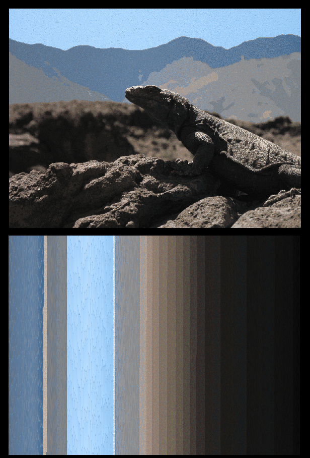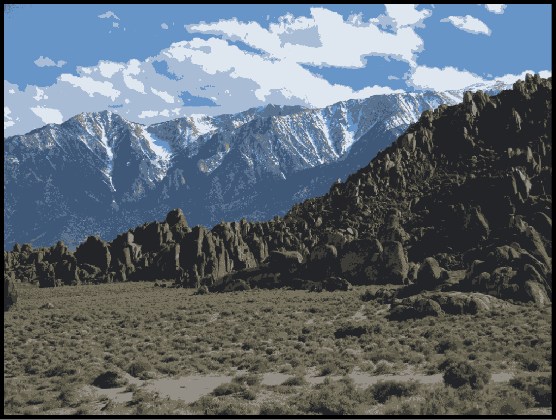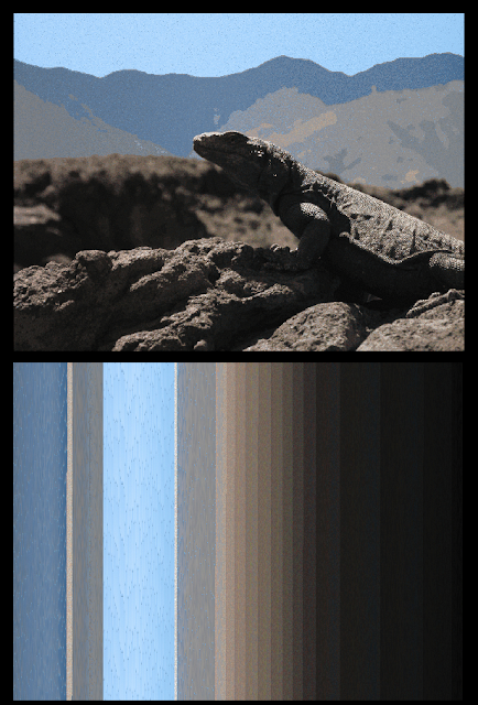 Below is an example of an image he made, using k-means to cluster the pixels. But why stop there? I decided to try going ahead and automatically paint the image with the palette. If you were to do this by painting every pixel with average color for its cluster, then this is just a form of posterization (a cute way to do image compression).