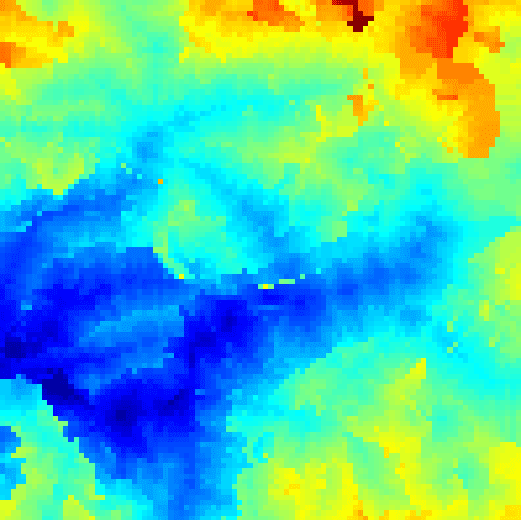 If we just plot the raw data then we get a pretty OK looking pixelated graph. On the left is Matlab's default colormap. Although you can see a pretty decent amount of detail, the order of all the colors isn't intuitive to most people and the blues and reds really stand out much more than they should based on the data alone.